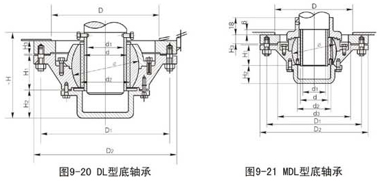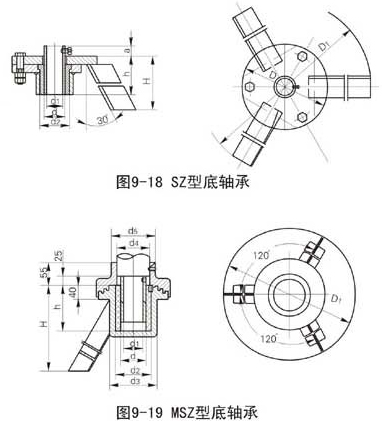 底轴承分三足式(SZ型)、底部法兰式(DL型)、迷宫三足式(MSZ)型、迷宫底法兰式(MDL)型四种,标定型号如下: