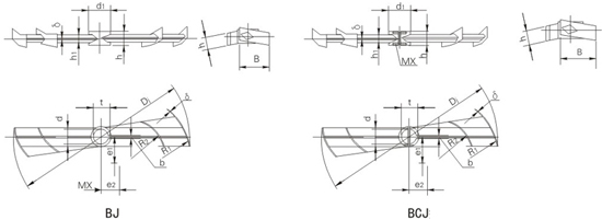 菱臂弧叶整体桨式BJ、菱臂弧叶可拆桨式BCJ