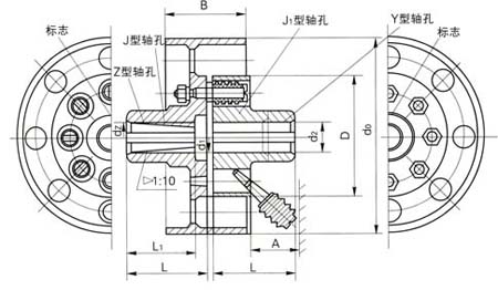 从动端:J1型轴孔,B型键槽,d2=70mm,L1=107mm
