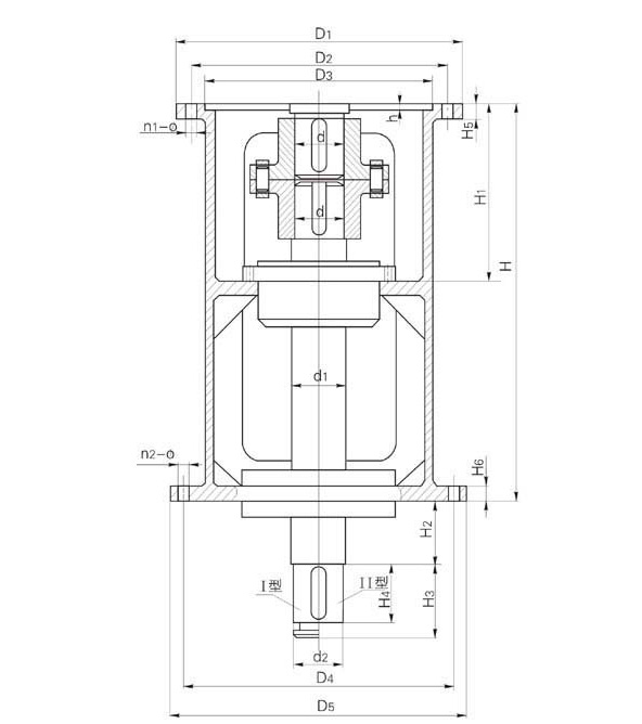 注:1、Ⅰ型为夹壳式联轴器联接