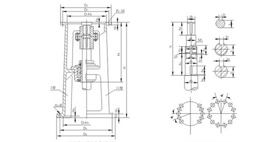 注:图示所“h”仅与本样本BLD、LC-Ⅱ、DC-Ⅱ系列减速机相配,如选用其他型号或其他厂家减速机,“h”需另行计算。增高后的LDJ型机架其下部空间高度可容纳205、206或207双端面机械密封。