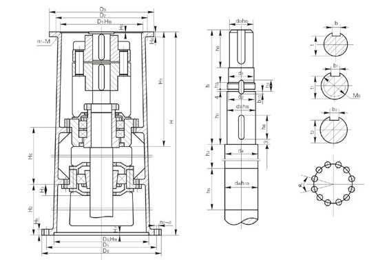 注:图示所注“h”仅与本样本BLD、LC-Ⅱ、DC-Ⅱ系列减速机相配,如选用其他型号或其他厂家减速机,“h”需另行计算。增高后的LSJ型机架其下部空间高度可容纳205、206或207型双端面机械密封。
