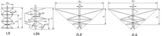 螺带式-LD、锥底螺带式-ZLD、螺带螺杆式-LDG、锥底螺带螺杆式-ZLG