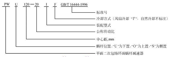 PW型平面二次包络环面蜗杆减速机型号与标记(GB/T16449-1996)