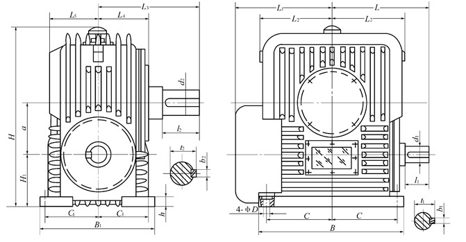 (3)PWS型—蜗杆在蜗轮之侧平面二次包络环面蜗杆减速器。