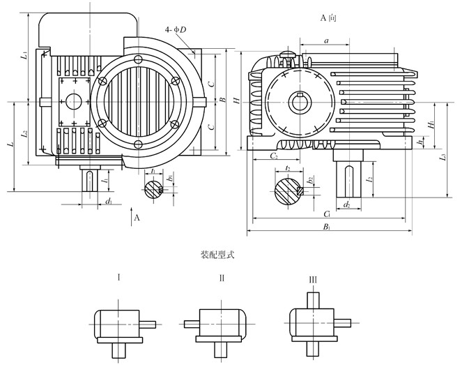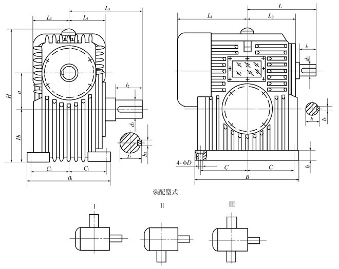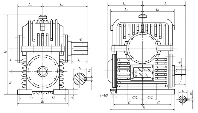 (1)PWU型—蜗杆在蜗轮之下平面二次包络环面蜗杆减速器;