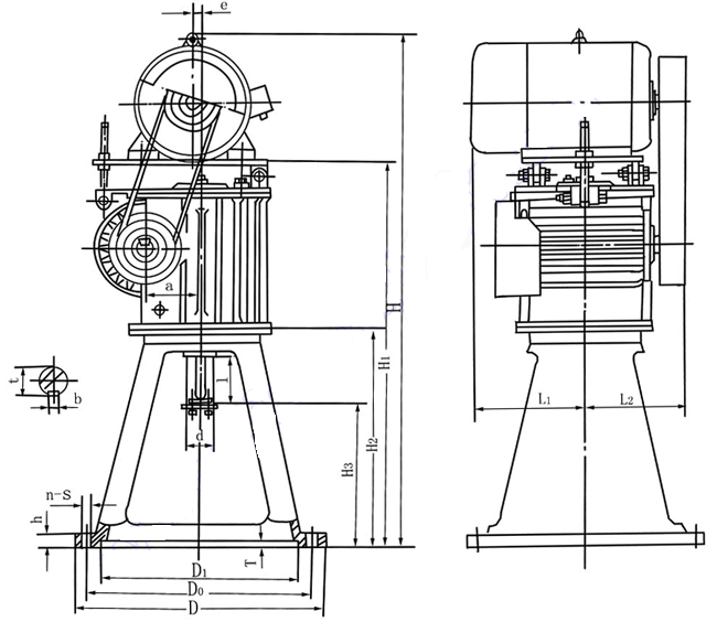 立式圆弧圆柱蜗杆减速器的型号用LCW表示,其中L表示减速器型式为立式,C表示蜗杆齿形ZC1,W表示蜗杆减速器。