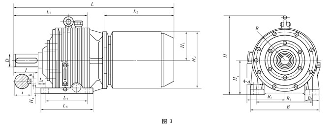 (3)YZL型一YZG型电机与二级圆柱齿轮减速器组成的辊道电机减速器。