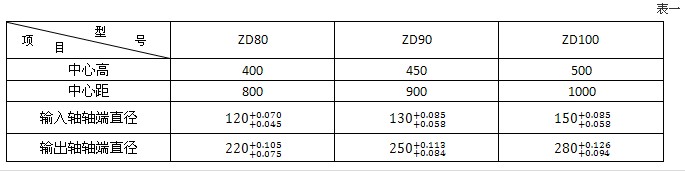 ZD80、ZD90、ZD100系列人字齿圆柱齿轮减速器主要技术规格 表一