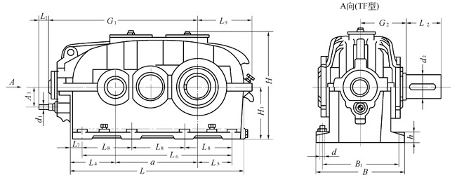TF、TFK圆锥、圆柱齿轮减速器外形安装尺寸